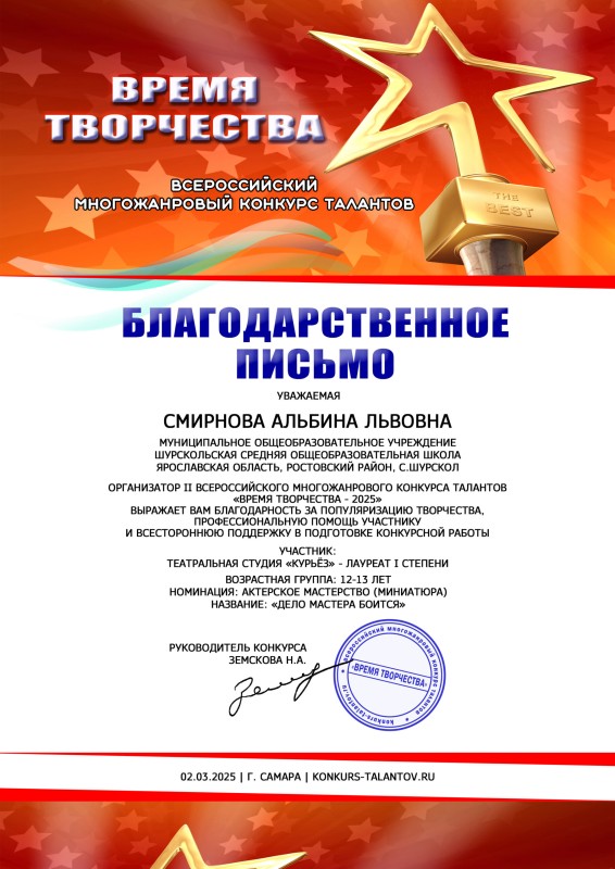 Школьный театр – это то место, где ребёнок может попробовать себя в разных ролях, что способствует его самоопределению и дальнейшей самореализации. Ученик овладевает минимально необходимыми для жизни в современном обществе навыками социальной активности и функциональной грамотности. Именно школьный театр может стать местом, где произойдет становление личностного самосознания, сформируется культура чувств, способность к общению, овладение собственным телом, голосом, пластической выразительностью движений, воспитается чувство меры и вкус, необходимые человеку для успеха в любой сфере деятельности. Театрально-эстетическая деятельность, органично включенная в воспитательный процесс, — универсальное средство развития личностных способностей человека.